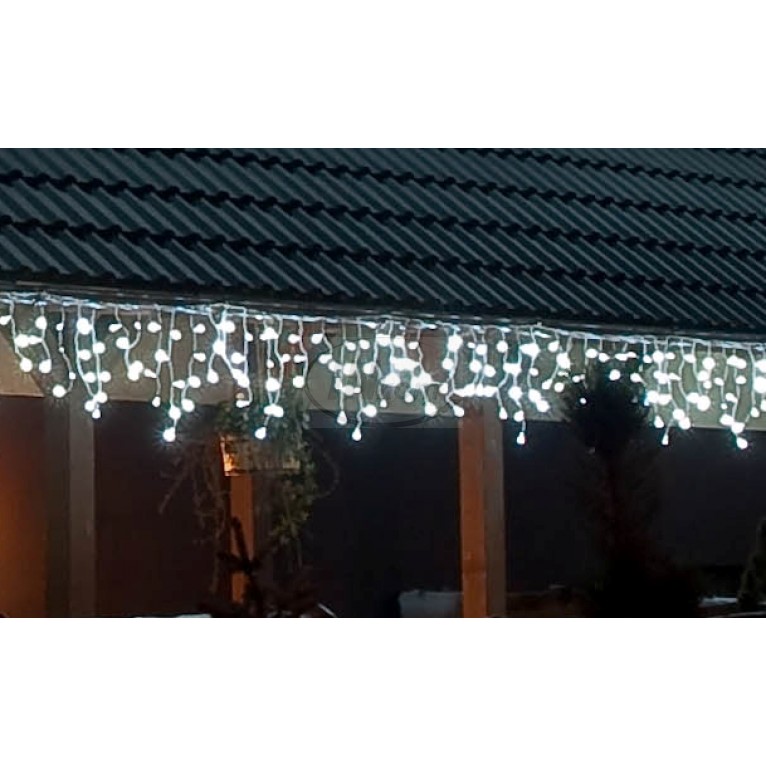 PROFI záves tkz. vodopád vodorovne 2 sekcie po 3m nadpájateľný , zvislo strapce striedajúce dlžky 10-40cm, spolu vodorovne 6m 100LED kombinovateľné s reťazami a komponentami DDID, studené biele LED ,ISKRIVÝ efekt každá 5-tá LED blikajúca studená biela , záves sa dodáva bez flexo šnúry DDID, gumený kábel bielej farby príkon 7,2W/230V, spájateľnosť max.30setov t.j 3000 LED. Použitie v exterieri ako aj v interieri.